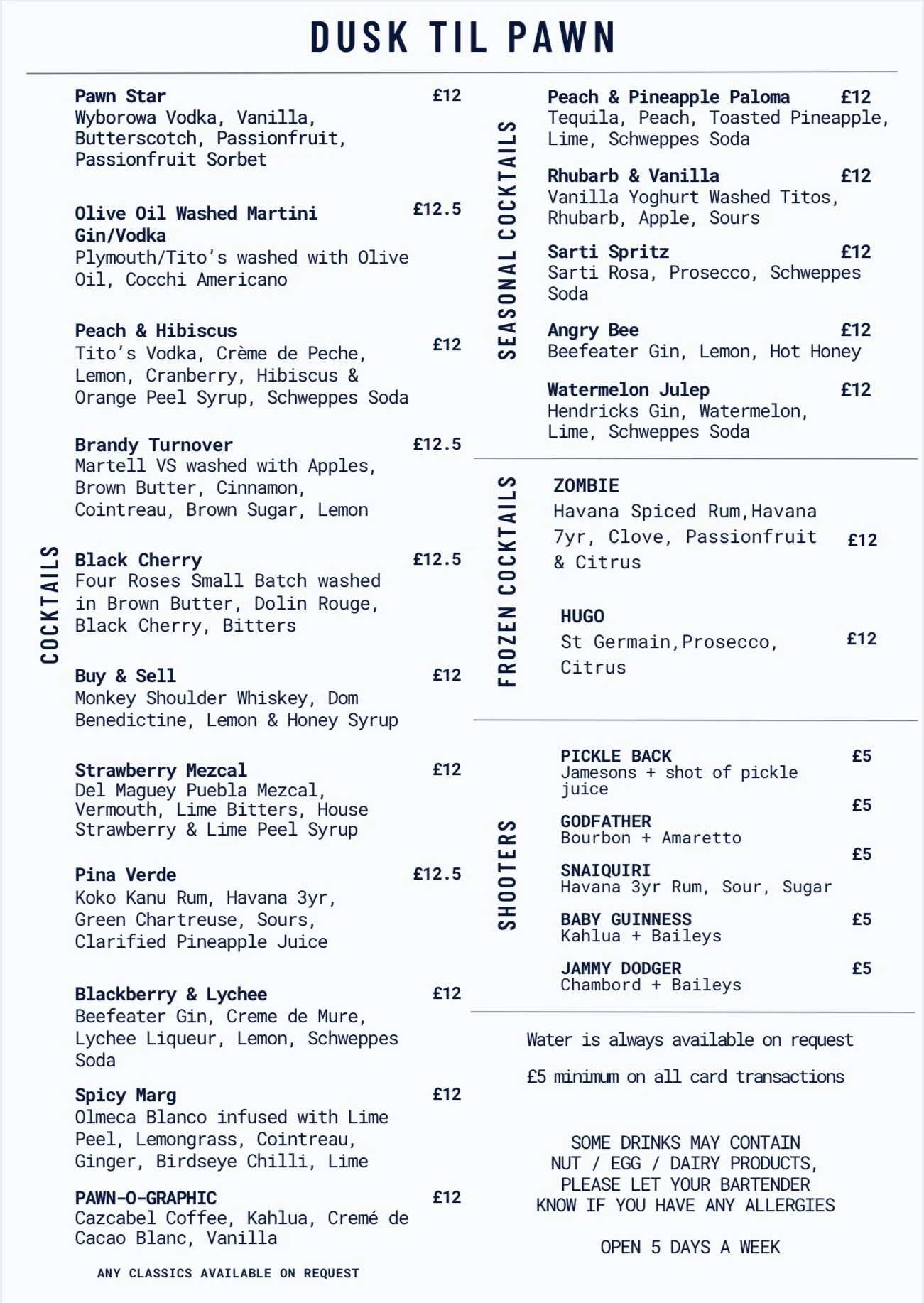 Please note that due to the size and layout of the bar, we can only accommodate bookings of up to 6 people. If your party is larger than this please contact us on Instagram, or Via. our Contact Form.